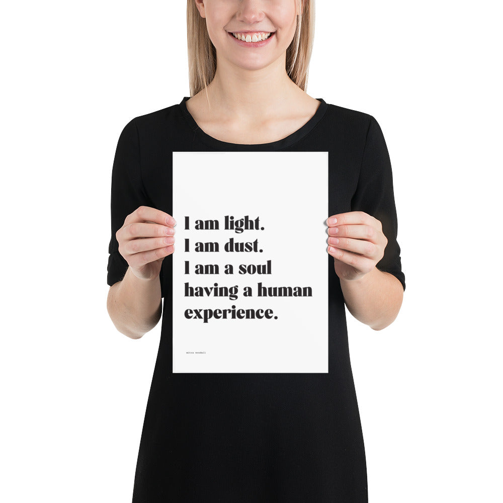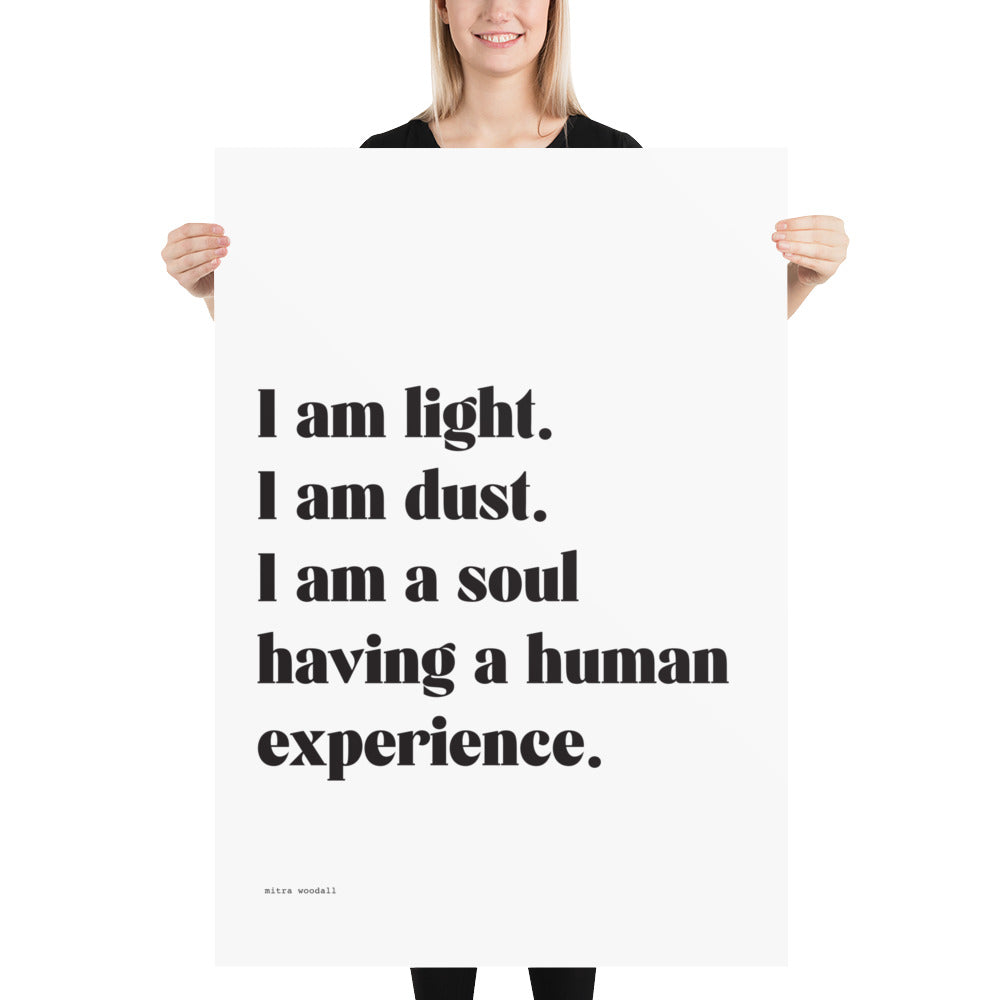 “I am light. I am dust. I am a soul having a human experience.”